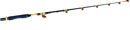 210 cm uzunlukta, 2 parça, 50 lbs atarlı, 1225 gr ağırlıkta, US4 özel patentli tasarım klavuz halkaları, karbon malzeme, tüm parçaları japon tasarımı, özel terleymeyen sünger tutamak gibi üst sınıf kamışlarda mevcut pekçok özelliğe sahip trolling kamış.