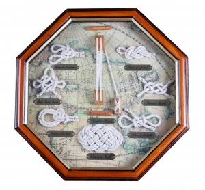 Dekoratif duvar panosu. Gemici düğümleri ve makara sistemi. Ahşap çerçeveli. 32x32 cm.