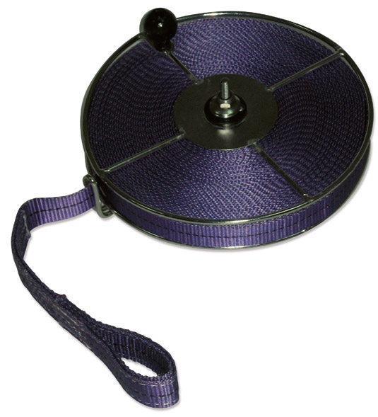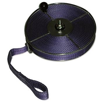 Kayışlı makara. AISI 316 Paslanmaz çelik makara ve kayıştan oluşur. Kelepçe Ø 25/30 mm. Makara Ø 30 cm, kayış boyu 30 m, kayış kopma yükü 2,000 kg.
