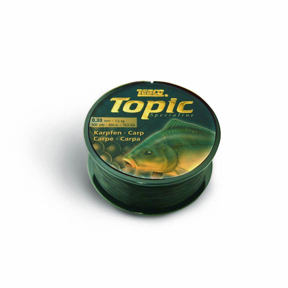 Sazan avı için özel üretilmiş ayrıca surf tipi kullanım ve uzağa atış için özel olarak geliştirilmiştir. Avcı balıklar için su içinde görünmezdir. Hem tatlı suda hem de tuzlu suda güvenle kullanabilirsiniz.Topic modeliyle Zebco büyük ilgi çekmiş, sazan avında çok kullanılan iyi bir misina olmuştur.Bir çok deneye ve teste tabi tutulan bu kaliteli misina, her geçen gün daha fazla kullanılmaya devam ediyor. Kaliteli, uygun fiyatlı, sağlam misina istiyorsanız sizin için doğru tercih olacaktır. Esnek yapı sayesinde uzun süreli kullanımlarda dahi yapısı bozulmaz.